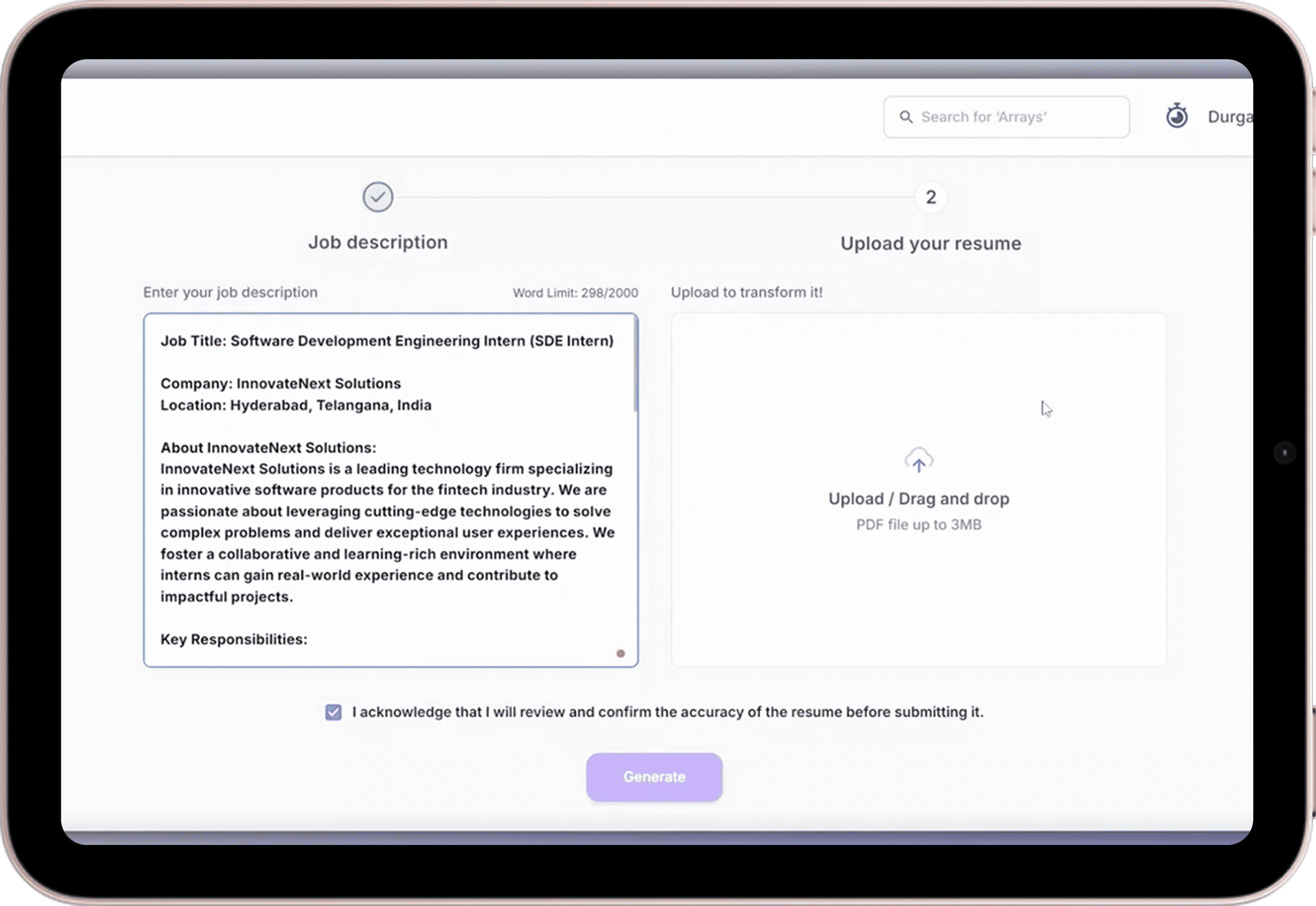 Tailors your resume to job roles in seconds
