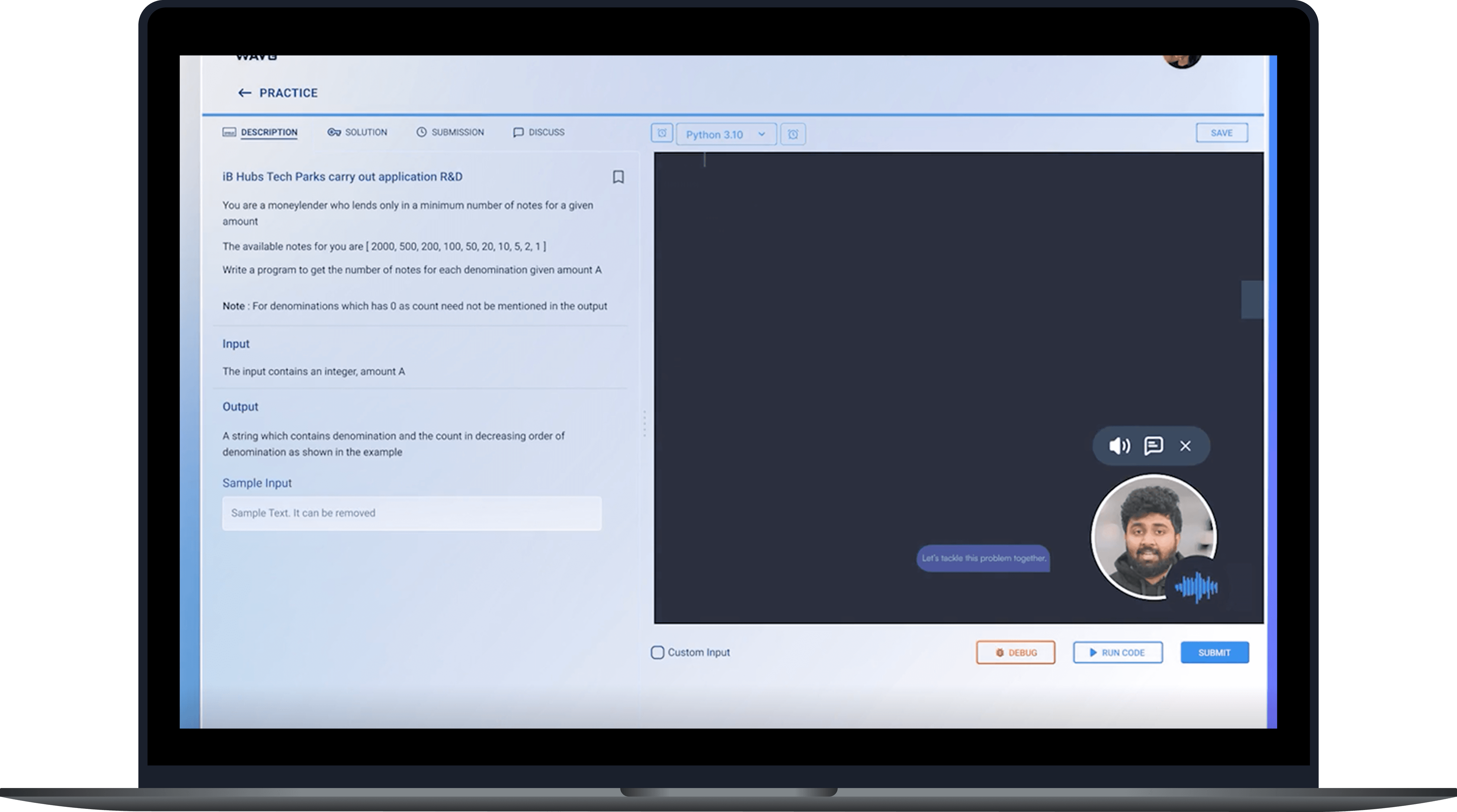 Practice coding rounds with adaptive difficulty